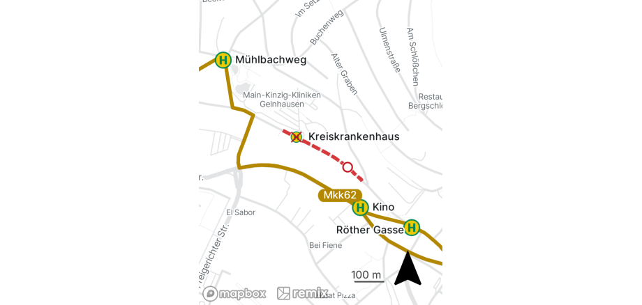 Die Haltestelle „Kreiskrankenhaus“ kann nicht bedient werden.