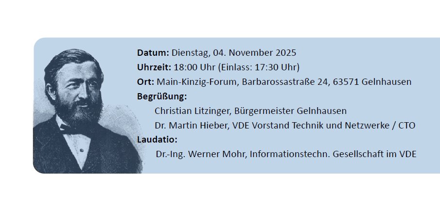 Den Preis erhält dieses Jahr Prof. Dr.-Ing. Georg Rademacher für seine herausragenden Leistungen im Forschungsbereich der optischen Übertragungstechnik über Glasfasern. Die Laudatio hält Dr.-Ing. Werner Mohr von der Informationstechnischen Gesellschaft im VDE.