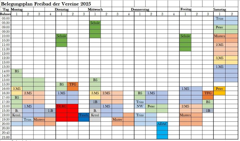 Belegungsplan Freibad