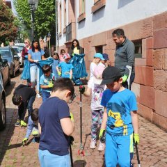 Die Kita "Rappelkiste" sammelte Müll in der Altstadt und hatte Unterstützung von Bürgermeister Daniel Chr. Glöckner und Jane Kolczok, pädagogische Fachberatung der Stadt Gelnhausen. Beim Draufklicken vergrößert sich das einzelne Bild.