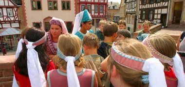 Wie wird der König zum Kaiser? Wie kann ein Junge zum Ritter werden? Wird man dabei wirklih geschlagen? Und was dürfen Mädchen machen, wenn sie schon keine Ritter sein dürfen? Schulkinder können bei dieser Führung durch die Kaiserpfalz eine spannende Reise in die "Kindheit" der Stadt Gelnhausen unternehmen, als Kaiser Bischöfe, Ritter und Knappen die Mauern noch mit Leben erfüllten.